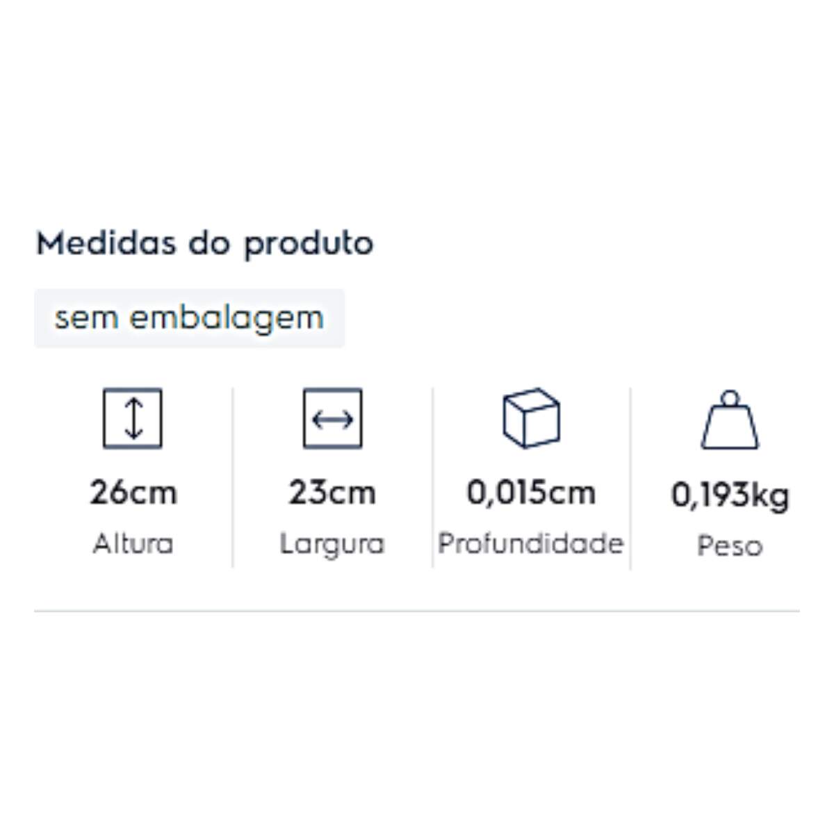 - Altura do Produto: 26 cm